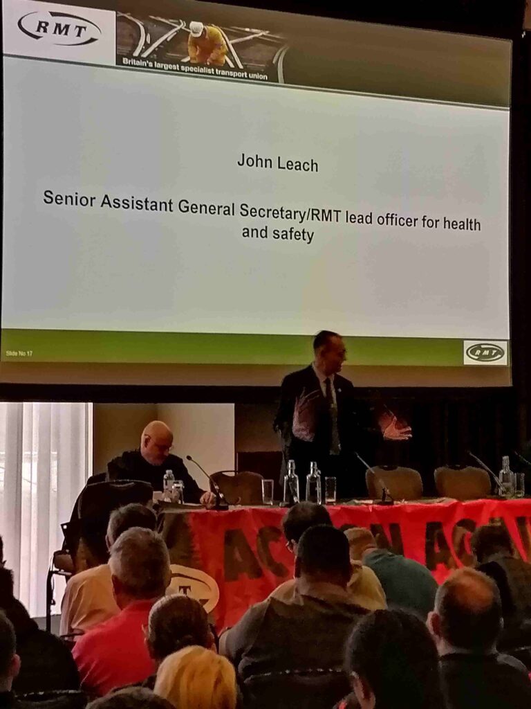 Both the conference and the conference training workshop also focused on the RMT ‘Action Against Assaults’ campaign. The training workshops included, fatigue management, introduction to human factors, introduction to RAIB (rail accident investigation branch), stopping violence at work, the role of the safety reps on workplace stress and working in extreme heat.
